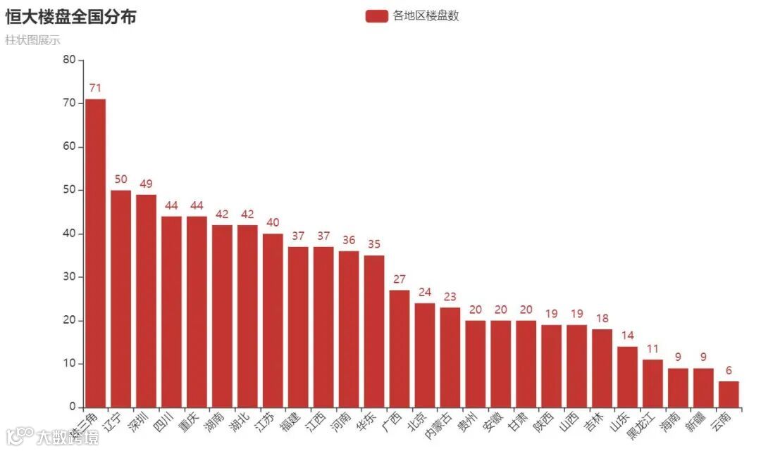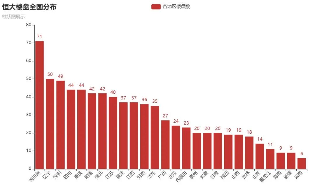 从地域上来看,恒大地产布局空间很广,几乎在中国大陆各个地区都设有分公司。其中广东省作为恒大集团的大本营,一省拥有两家分公司:珠三角公司与深圳公司,共有楼盘120个,当之无愧地夺得冠军!