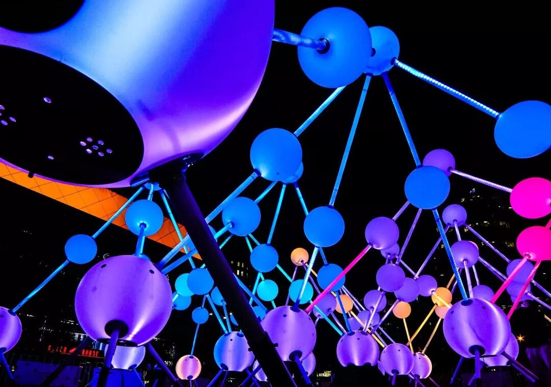 这里是唯一能看到来自世界各地如此美丽独特的灯光艺术收藏品的地方,共有超过25个装置。想象一下,450米长的巨大霓虹灯管划过夜幕,100个红色闪光圈编织而成的金丝雀码头地标,以及巨大的水生生物投影...