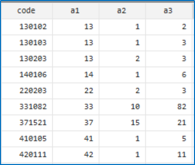 clear allinput code str20130102 //河北省石家庄市长安区130103 //河北省石家庄市桥东区130203 //河北省唐山市路北区140106 //山西省太原市迎泽区220203 //吉林省吉林市龙潭区331082 //浙江省台州市临海市371521 //山东省聊城市阳谷县410105 //河南省郑州市金水区420111 //湖北省武汉市洪山区endnsplit code, digits(2) gen(a)