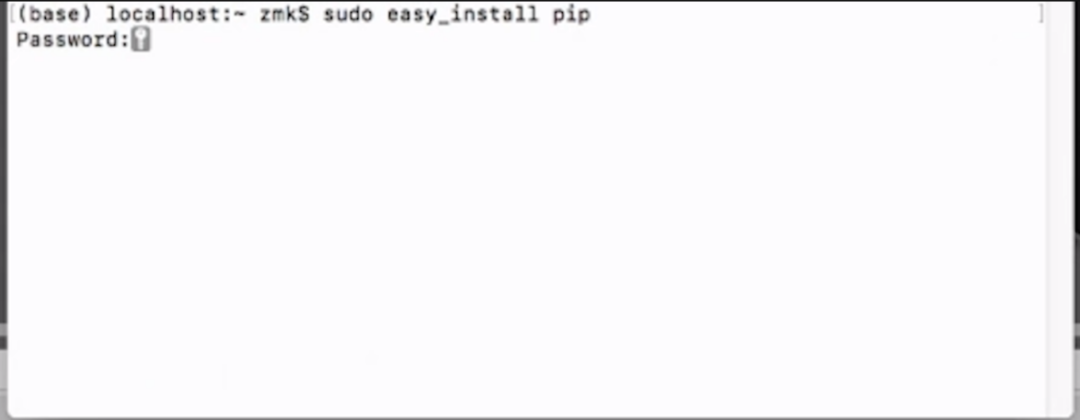 此外,我们在使用Python时常常要用到第三方库。通过使用pip命令工具,可以实现对第三方库进行查找、下载、安装和卸载的功能,在使用pip之前我们需要对其进行安装,方法是打开终端并输入sudo easy_install pip,之后再输入电脑的密码,如下图所示。接下来,输入pip install +第三方库名即可开始安装~