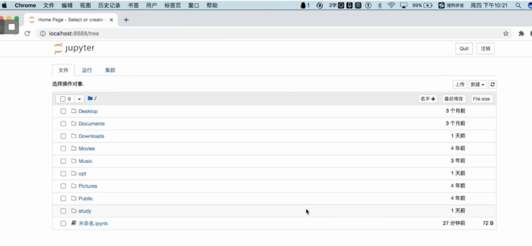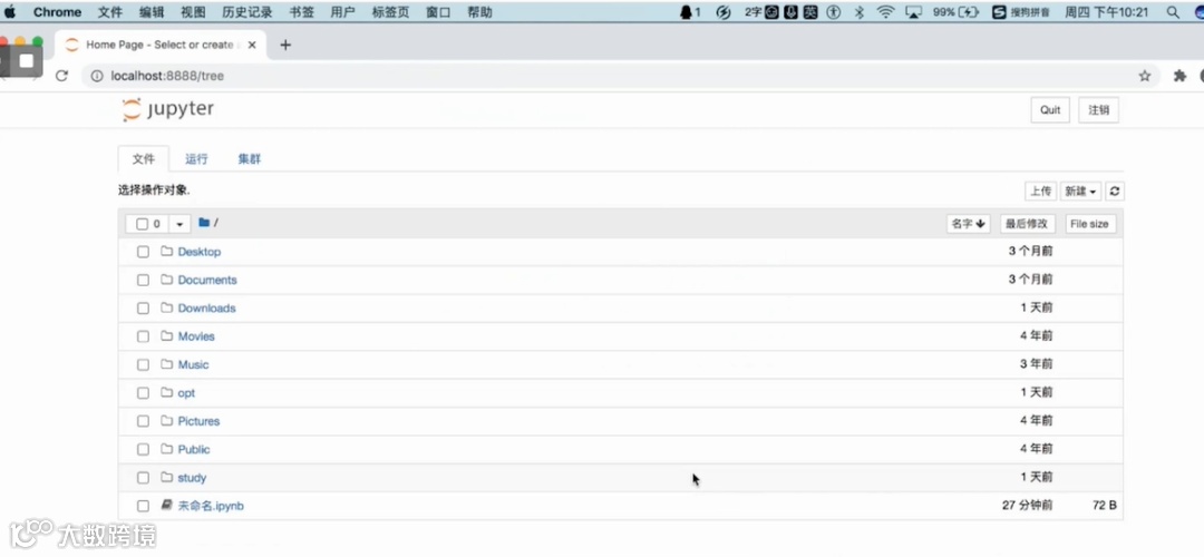 我们可以在终端中输入jupyter notebook并按下回车,弹出Jupyter Notebook的界面,便可开始使用啦~