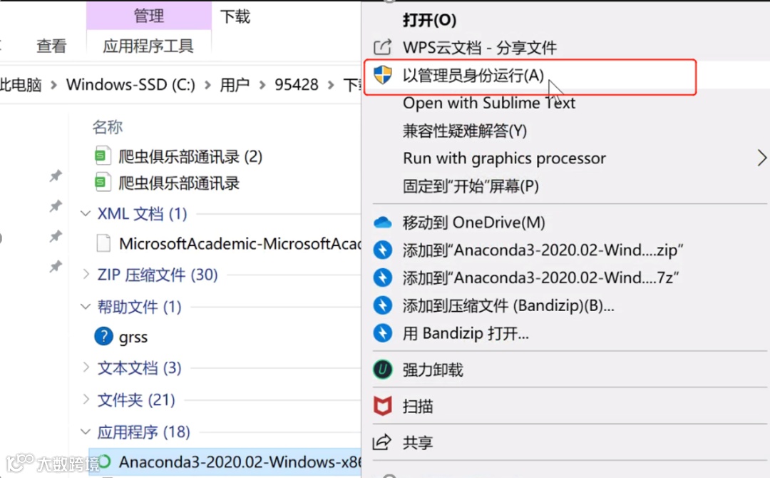 之后,可以关闭电脑上的杀毒软件,并右击安装包,选择以管理员身份运行,再重复一遍安装过程。