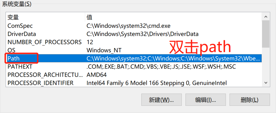 ③ 在系统变量里找到PATH,双击PATH,点击新建,在结尾加上路径,格式为(path1;path2;path3)。例如:Anaconda的安装路径是C:/users/one/Anaconda3,那么就追加C:/users/one/Anaconda3;C:/users/one/Anaconda3/Lib/site-packages;C:/users/one/Anacoonda3/Scripts