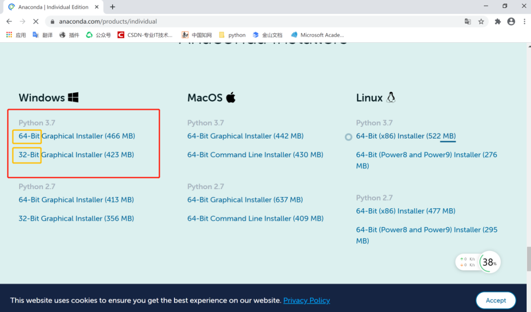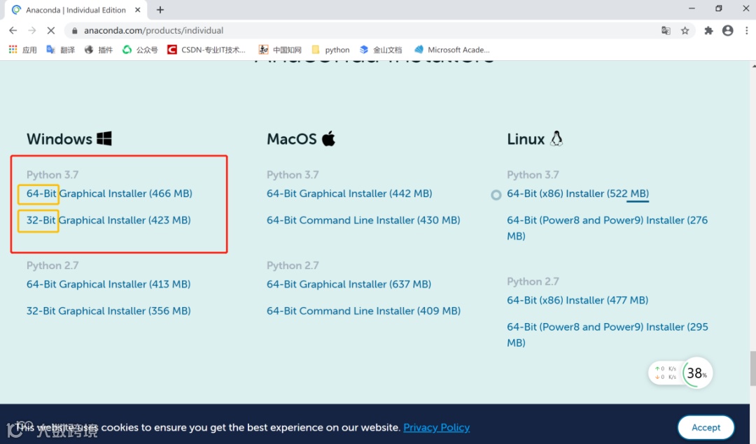 确认完成后,可以在Anaconda的官网上找到与电脑版本相匹配的安装链接,网址为https://www.anaconda.com/download/。