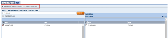 在“所属区域”“所属城市”中输入“SHANGHAI”(须是英文)。页面上端的“Address of information”表示注册地,“Trading address”表示经营地,在设置时要注意区分。