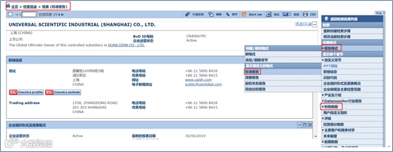 主界面显示的是标准报告,包括公司的各项基本信息。通过右边的索引栏,可以选择其他报告格式或进入其他章节。