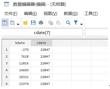此时数据是一串数值,可以看到数据集中还有负数,这是因为,此时的数据是按以1960年1月1日为第0天开始计算的天数,在此之前的时间,则以负数表示。接下来,就可以直接使用personage命令了。