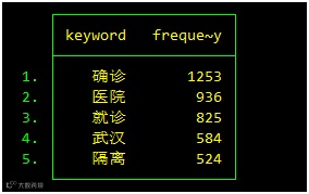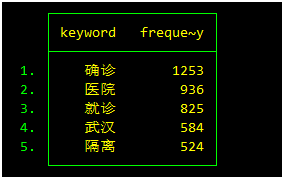 clear allpythonimport jiebayiqing=[]with open(r"D:\冠状病毒\疫情数据.txt",encoding="gb18030") as f:for i in f.readlines():str=iyiqing.append(str)with open("分词结果.txt","w",encoding="utf8") as f2:for unit in yiqing:seg_list = jieba.cut(unit) #分词采用精确模式for word in seg_list:f2.write(word+"\n")end