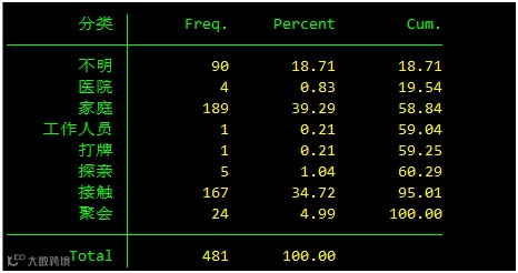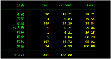 小编搜集了河南省各市公布出来的流调数据,截至2月26日24时,河南省包括17个省辖市在内累计报告新型冠状病毒肺炎确诊病例1272例,其中有确诊病例详细流调数据的有944例,对数据进行简单处理后,利用Stata软件做了文本分析。