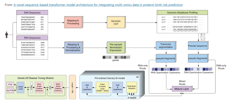 LLM与基因组应研究者此前开发GeneLLM(基于 Transformer 的 LLM)已实现基因组数据的疾病预测,但未扩展至多组学及产科场景;