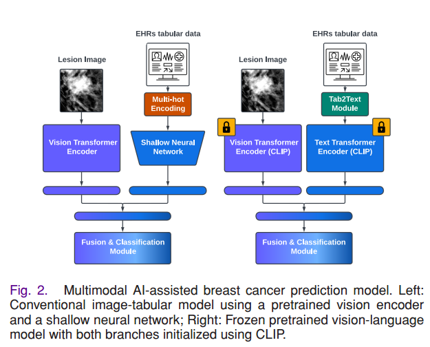 本研究首次将这一理念引入医学多模态乳腺癌预测任务,探索其在影像+EHR融合中的优势。