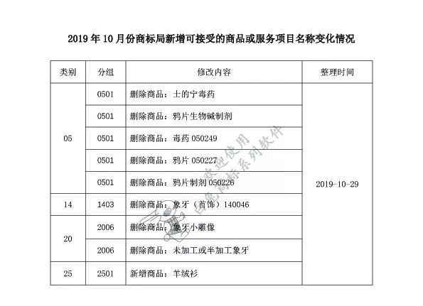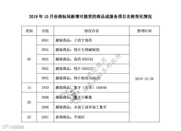 自今年1月份发布白兔标注版《类似商品和服务区分表》以来,因其详尽的内容、清晰的标注深受广大商标代理人的欢迎。近日,商标网上服务系统近期对可接受的网报商品服务项目做了调整:新增1项商品,删除8项商品。我们已经同步更新白兔标注版《类似商品和服务区分表》。同时,白兔商标查询信息系统和商标档案管理系统商品分类信息也将同步更新,敬请关注。