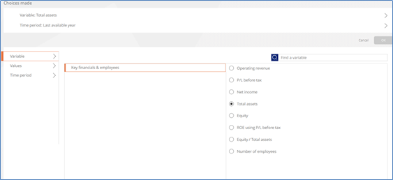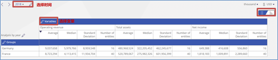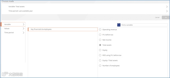 我们先在“Variable”界面选择关键财务指标“Total assets”: