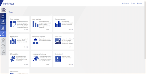 可以看到,Bank Focus设置的筛选条件非常丰富。在下面的介绍中,我们将从“search”“results”“report”“tools”四个功能来分享如何使用这个庞大的数据库。