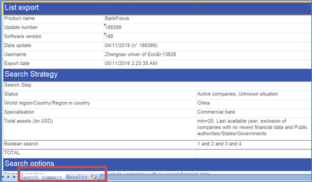 在开始正式的分享前,我们先以中间的检索条件为例,来看看Bank Focus都可以为我们提供哪些信息: