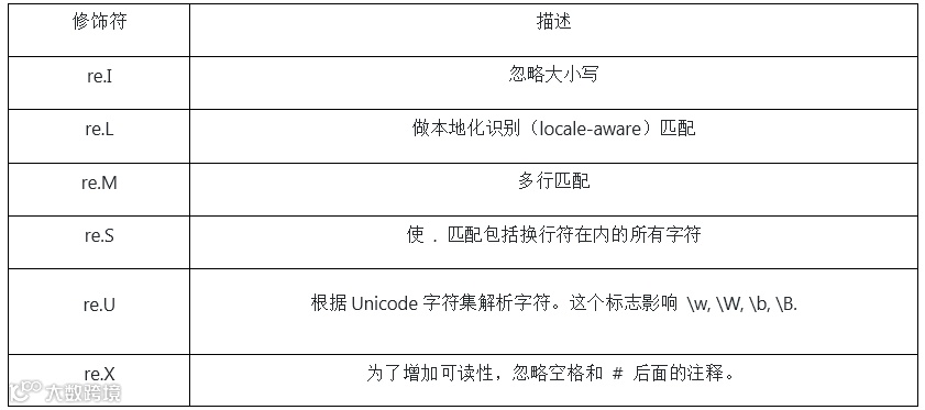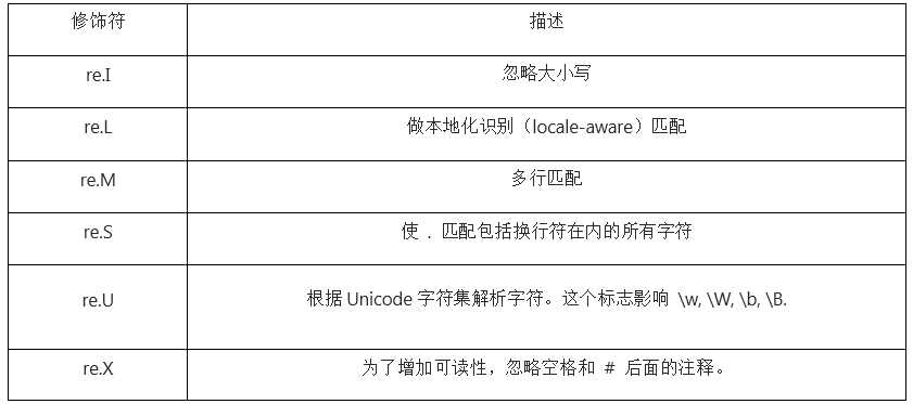 正则表达式修饰符如下表所示: