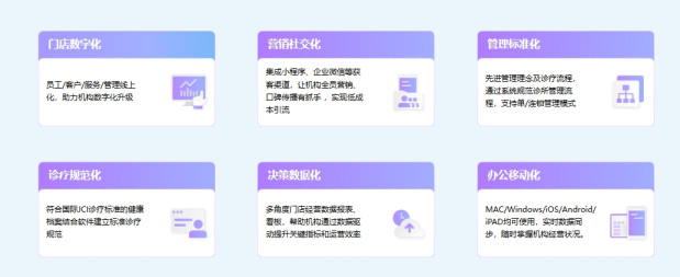 领健为医美机构、生活美容机构、口腔诊所提供经营管理一体化系统。提供了覆盖单店管理、连锁管理、健康档案/电子病历、客户关系管理、智能营销、B2B交易平台、进销存、保险支付、影像集成、BI商业智能等覆盖机构业务全流程的一体化SaaS软件。