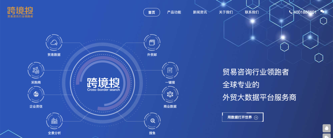 跨境搜由南京猎搜信息技术有限公司开发,于2010年上线。具备海关数据、邮件群发、社媒获客等功能模块,适用于传统制造业、电子产品、服装纺织等行业的客户。