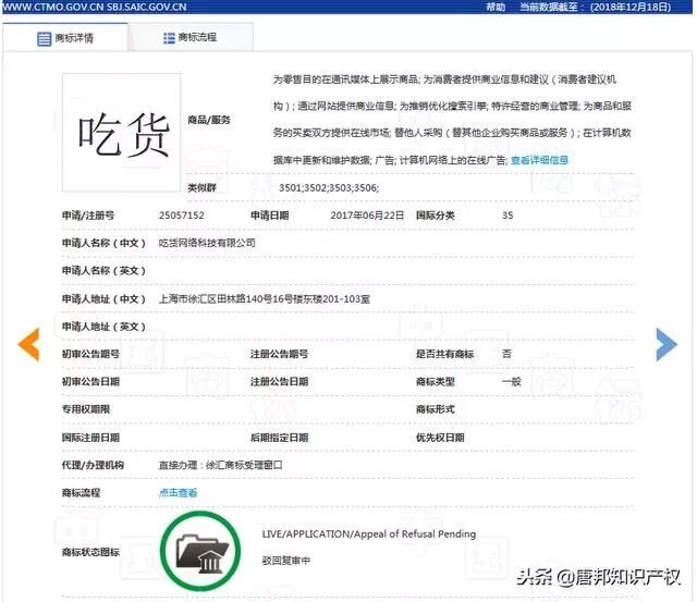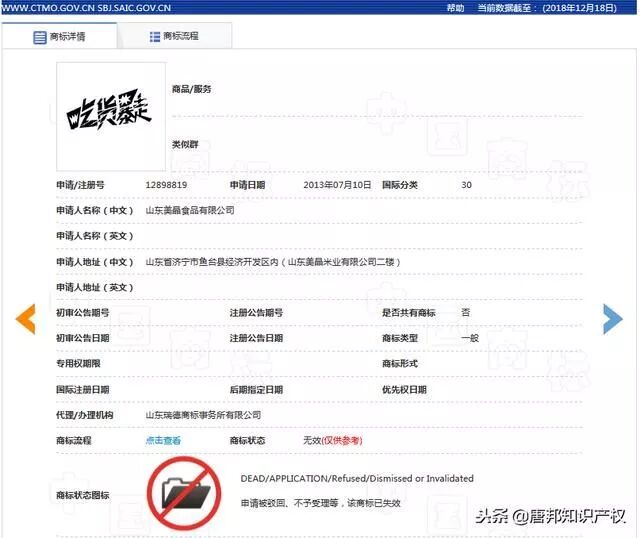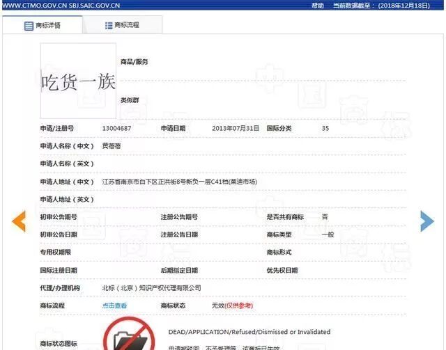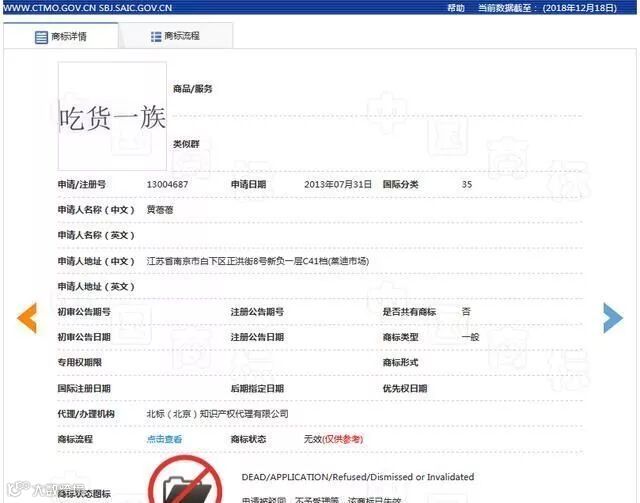 不过,这些商标大部分都未注册成功,比如说第13004687号“吃货一族”商标、第12898819号“吃货暴走”商标、第25057152号“吃货”商标。
