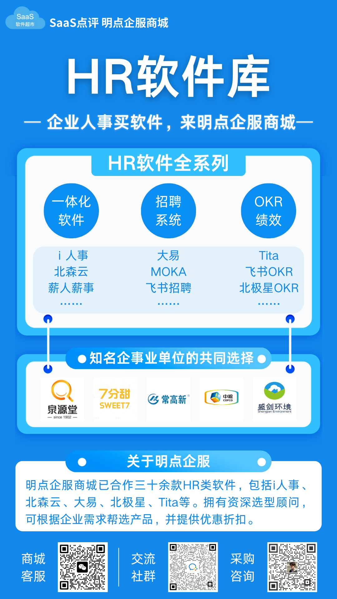 如需购买飞书OKR和钉钉OKR都可以找我们,明点企服商城为企业提供各类SaaS软件产品,目前已合作100余款国外优质产品,如飞书、钉钉、北极星OKR、Tita等多款OKR系统,扫码添加顾问,拉你进群领取详细对比资料/免费试用。