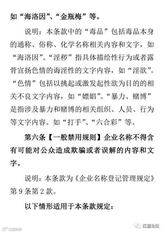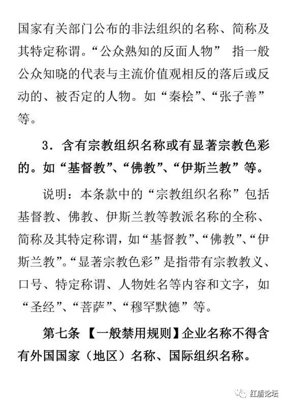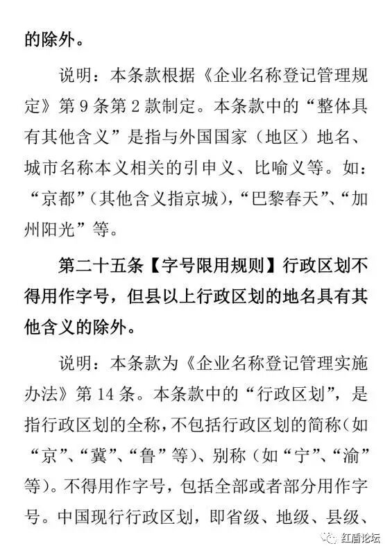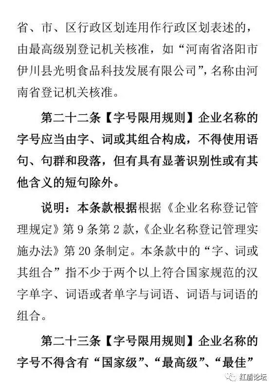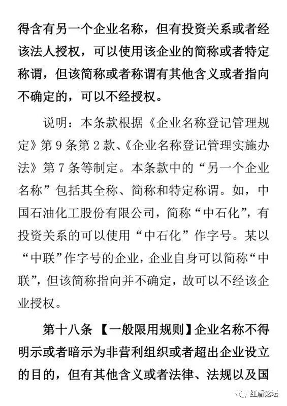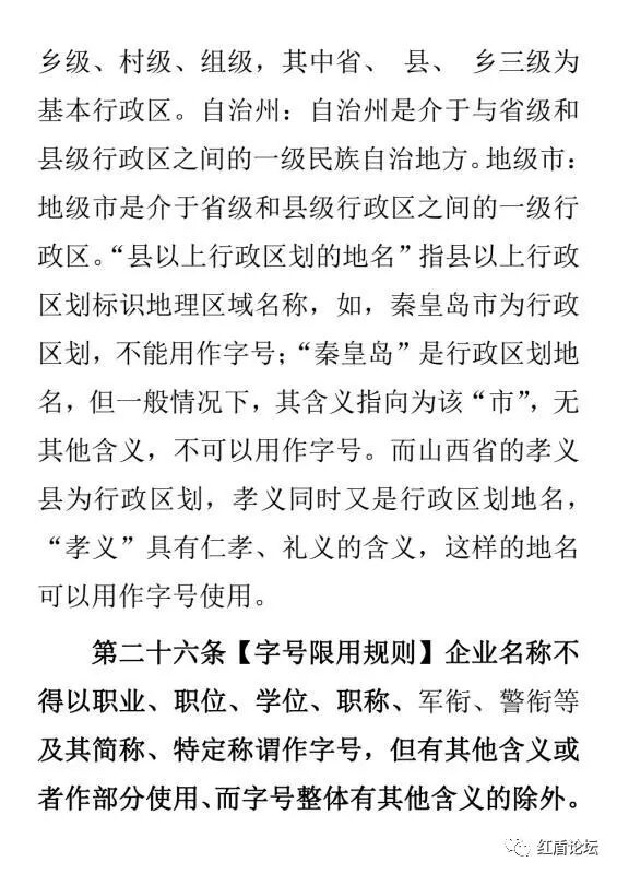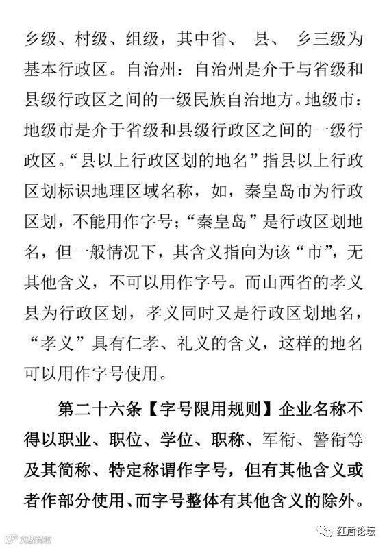 (二)与同一名称核准机关已登记、申请的企业名称行政区划、字号、行业和组织形式排列顺序不同但文字相同。如:北京红光酒业发展有限公司与红光(北京)酒业发展有限公司。