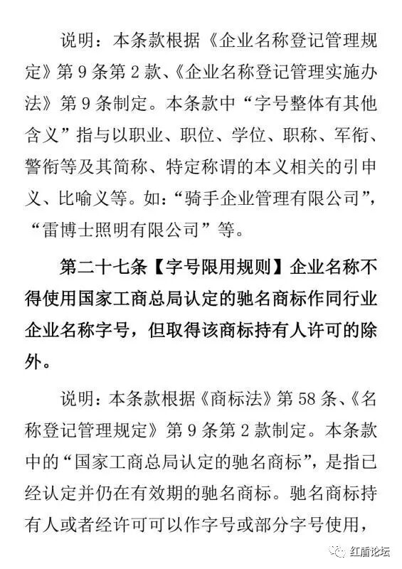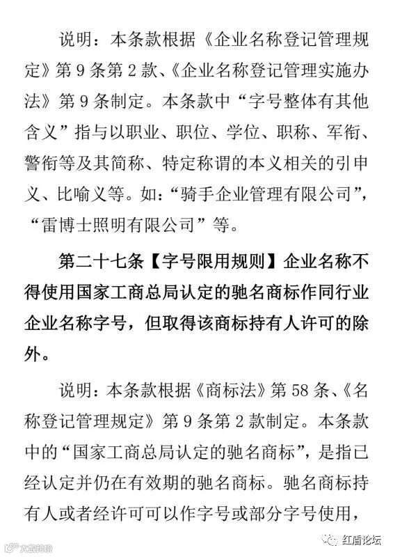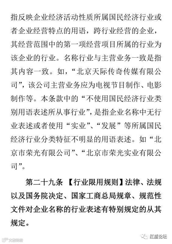 (三)与同一名称核准机关已登记、申请的企业名称字号、行业文字相同。如:北京红光酒业发展有限公司与北京市红光酒业发展经销部。
