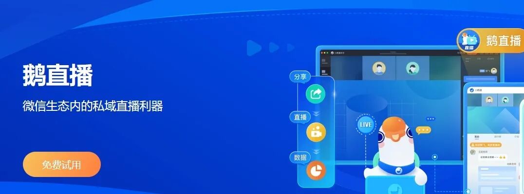 小鹅通直播是小鹅通平台提供的一项服务,它允许用户进行在线视频直播,主要面向教育培训机构、企业培训、企业内训、线下培训机构等场景。小鹅通本身是一个集品牌营销、用户管理、互动营销、在线学习和品牌传播于一体的知识商品平台。