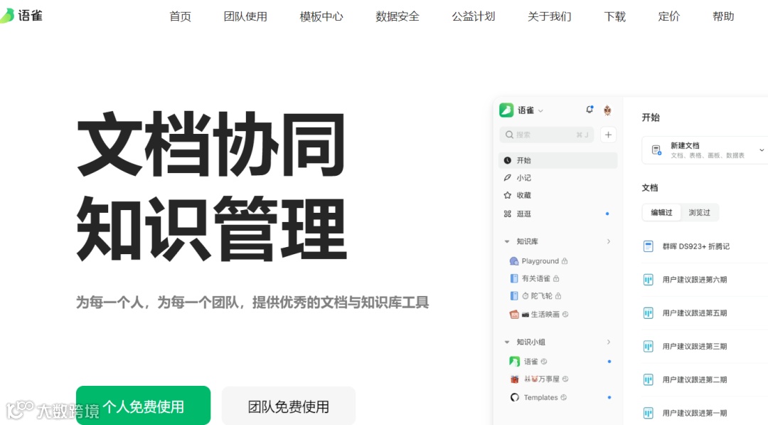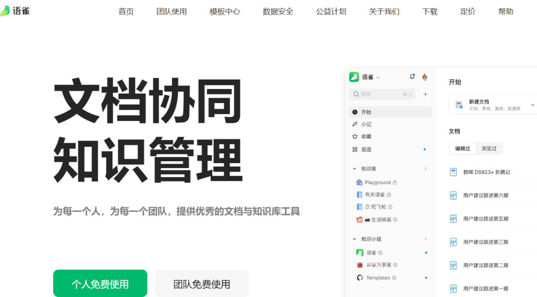 语雀是一款非常优秀的在线文档软件,它注重文档的编辑和管理,提供了多种文档形式,适合整理笔记、写文章、制作演示等场景。语雀还注重团队协作和知识共享,同时它拥有简洁明了的用户界面,易于上手的操作方式,以及高度可定制化的主题设置等,还支持多种格式的插入,包括表格、思维导图等,可以满足用户多样化的笔记需求。此外,语雀还提供了丰富的插件和扩展功能,可以扩展笔记的功能和应用场景。