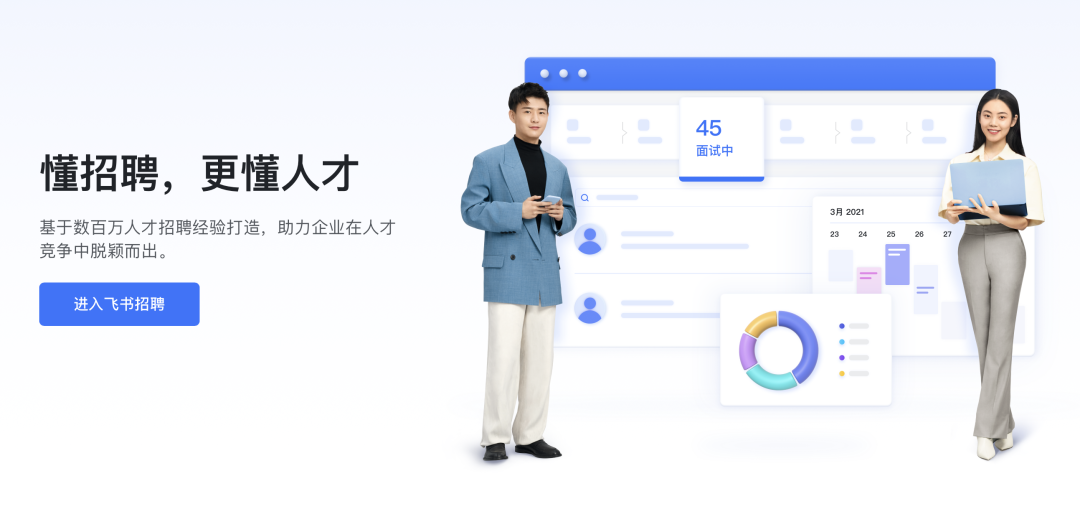 飞书招聘是字节跳动自主研发的招聘系统,具有这些优势:人才开源,支持主流渠道全面覆盖,统一管理;招聘官网快速搭建,充分调动全员参与,一键内推;支持猎头协作;一体化 、智能化、移动化,招聘各方都能随时随地的参与或处理招聘事务。