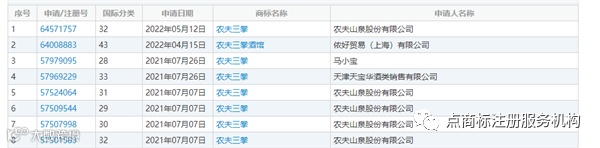 据悉,此前该公司已经申请了4次“农夫山泉”商标,但是均被驳回。目前“农夫三拳”商标已经被深圳一家科技公司以及三个自然人成功注册。