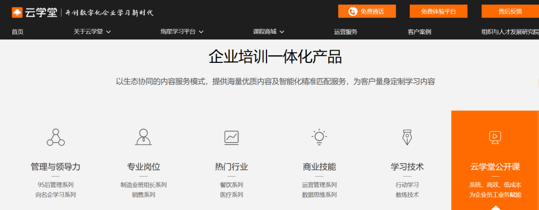 云学堂为客户提供数字化企业学习解决方案服务,其中包括:软件SaaS服务、内容解决方案服务、数字化企业学习咨询和运营服务。