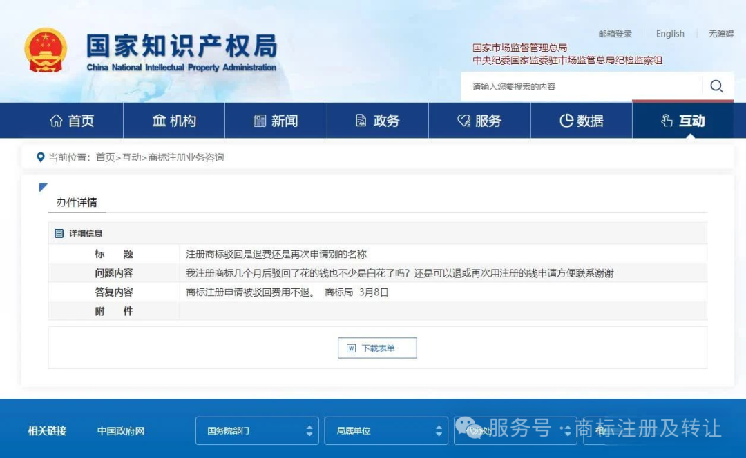注意:如果商标被驳回,费用是不退的,任何承诺包过都是骗人的。下面是商标局的答复。