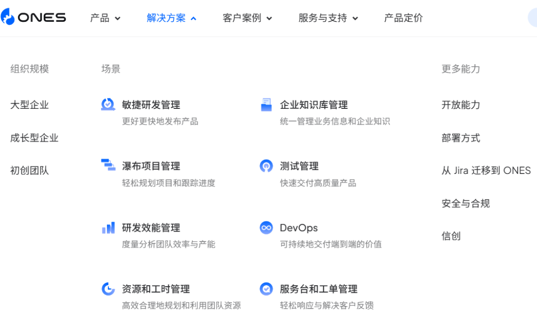 ONES是整合敏捷开发与DevOps的研发管理工具,助力企业员工进行有序的需求及任务管理、测试用例管理、知识沉淀,促进团队良好协作,提高工程质量。它的一系列产品矩阵能够提供需求管理、测试用例管理、知识沉淀及文档协作等功能,同时它还整合了DevOps工具链帮助团队高效率进行研发协同。