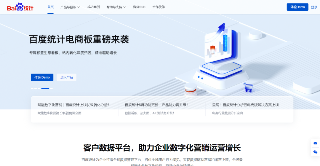 百度统计集合网站、APP、小程序和线下零售统计,汇聚成全面的数据分析平台 。