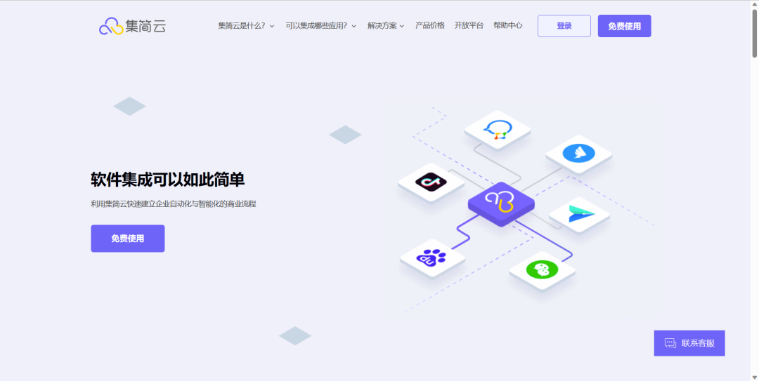 答:集简云是一款超级软件连接器,无需开发,无需代码知识就可以轻松打通数百款软件之间的数据连接,构建自动化与智能化的业务流程。通过自动化业务流程,每月可节省您数百甚至数万小时的人工成本。