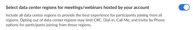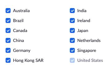 注意:如果选项为灰色,表示其已在账户级别被锁定,需在该级别进行更改。勾选您希望用来传输会议中和网络研讨会中数据的区域。