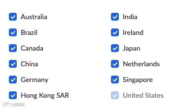 勾选您希望用来传输会议中和网络研讨会中数据的区域。