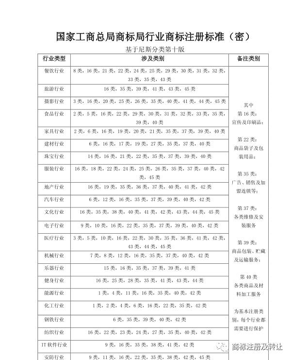导读:很多企业在注册商标时不知该选哪个类别,我给总结了一下,这一张表就全了。