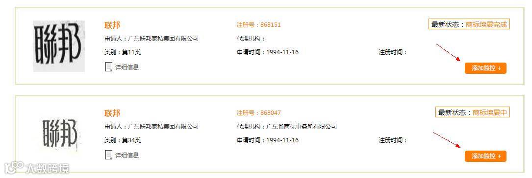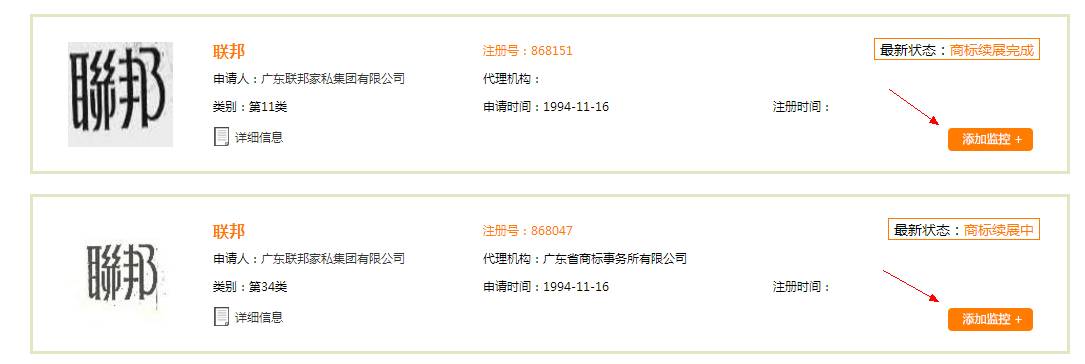 说到商标监控,大家可以在免费商标查询平台标天下里添加自己想监控的商标!当你监控的商标有任何异常状态时,都会有短信或邮件实时提醒!
