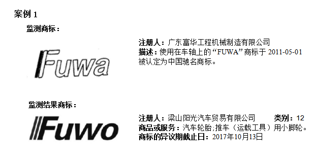 装备制造业是佛山支柱产业,为支持我市装备制造业商标品牌发展,现已全面启动装备制造业商标抢注监测预警服务。本局现运用佛山地区商标统计分析与预警保护软件系统对初审公告期的商标是否存在可能与本市的装备制造业商标构成在类似或非类似商品上的抢注行为进行监测。近期部分抢注监测结果案例公布如下: