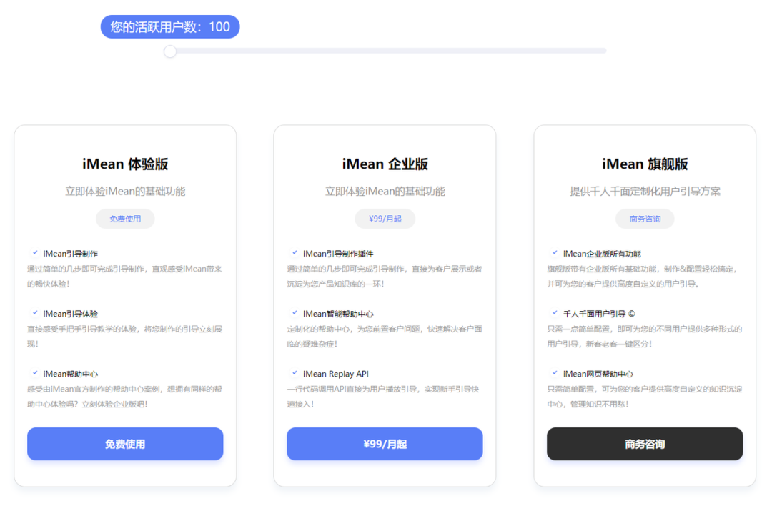 iMean提供了一种数据驱动的,无代码的,可以“手把手”教客户的优体验的解决方案。