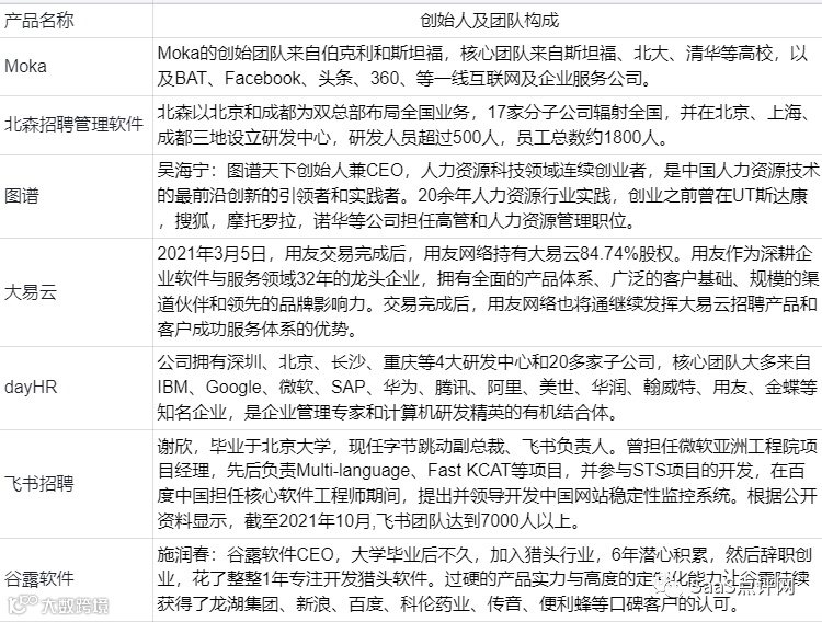 对比来看,北森、图谱、大易云上线更早,可能拥有更多经验。