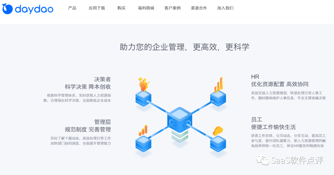 dayHR包含人力资源九大核心模块,集在线办公、移动应用、企业社交、增值服务于一体。