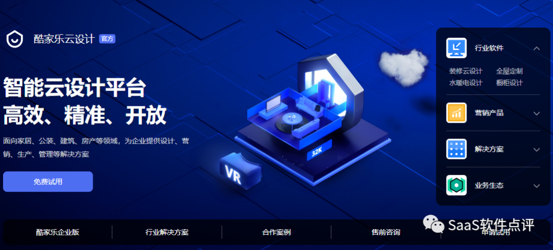 产品简介:酷家乐专注云设计系统及三维内容制作的技术研发和应用,面向家居、房产、公装等全空间领域。