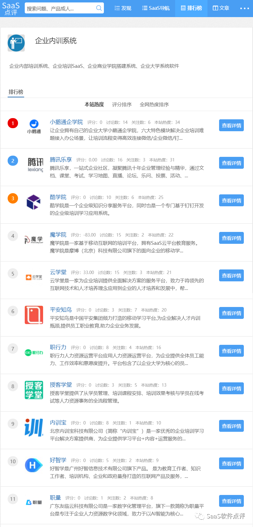 SaaS点评网自2019年上线以来不断收录用户评价,旨在帮助大家做出更好的选择。本文介绍企业培训学习SaaS系统排行榜单。