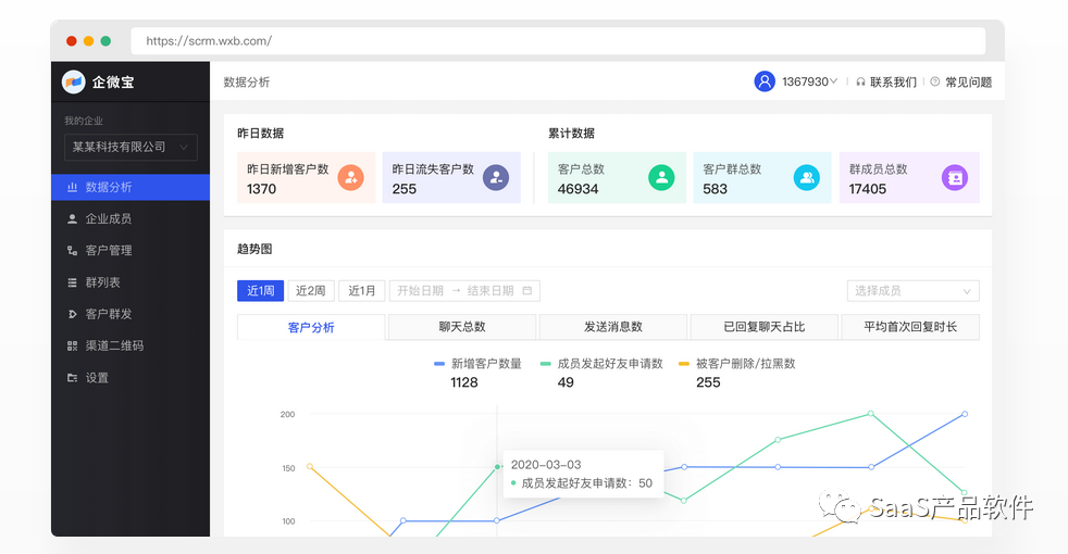 知名微信运营工具WeTool在今年5月25日起永久停止下载及新用户接入,之后杭州推宝科技有限公司便推出了针对企业微信的SCRM产品企微宝。企微宝SCRM私域流量运营平台为企业提供微信营销、私域流量运营管理一站式解决方案,包含聊天存档,渠道活码,会话存档,即时通讯,客户管理,客户群发,快捷回复,机器人,话术辅助等功能。
