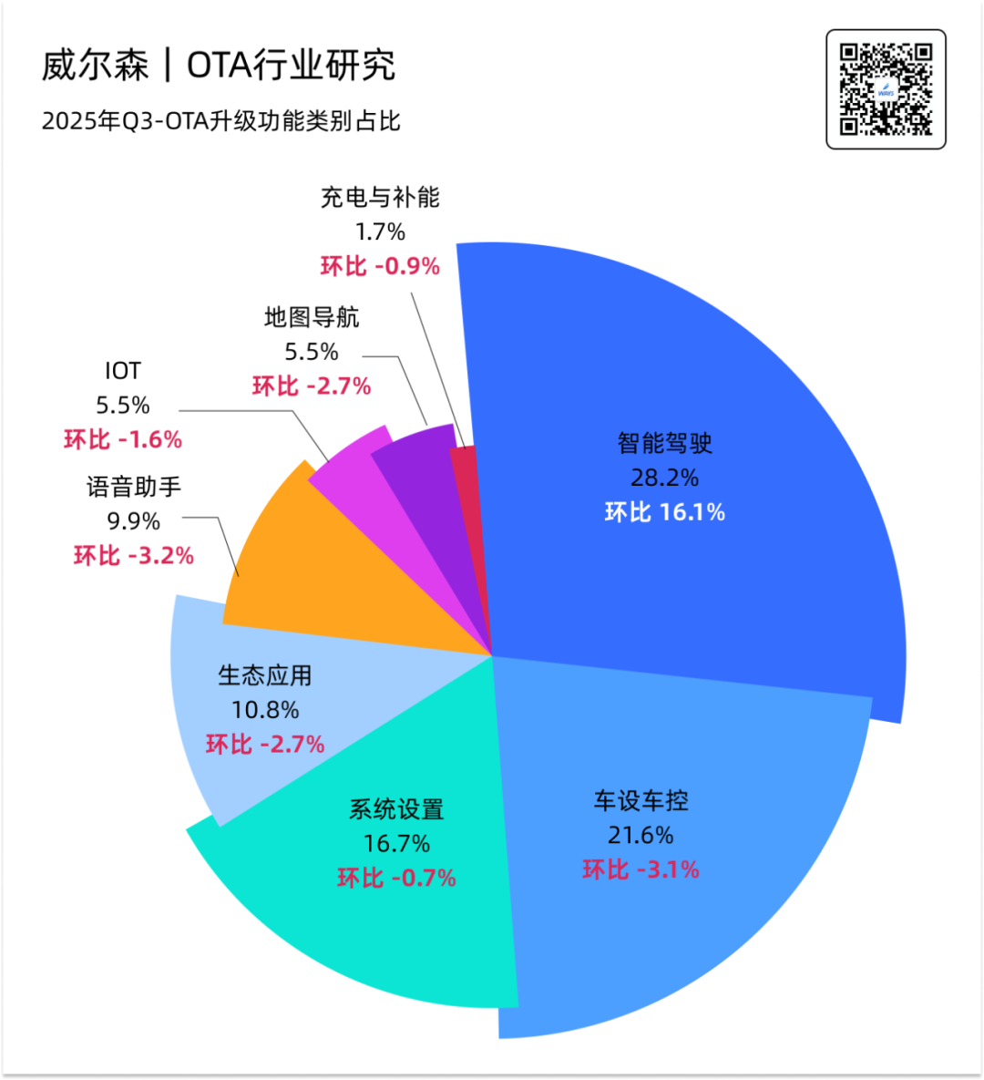 本季度功能大类方面,TOP3依次是智能驾驶、车设车控、系统设置,同时全行业Q3仅智能驾驶类别功能升级,实现环比增长16%。