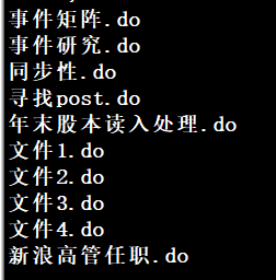 fs命令是stata的外部命令(输入“ssc install fs”进行下载),可以列示缺省路径下的指定类型的文件。fs命令只显示文件的名称,这些文件不包括文件夹和目录,并将结果储存在返回值r(files)中。更改到确定路径之后,输入”fs *.do”,其中, “*”为通配符,表示可以匹配任意零个、单个或多个字符(当然,文件名不能为空,所以此处表示至少有一个字符);“.do”表示do文件;“fs*.do”表示遍历当前路径下的所有do文件。输入该命令之后,结果如下: