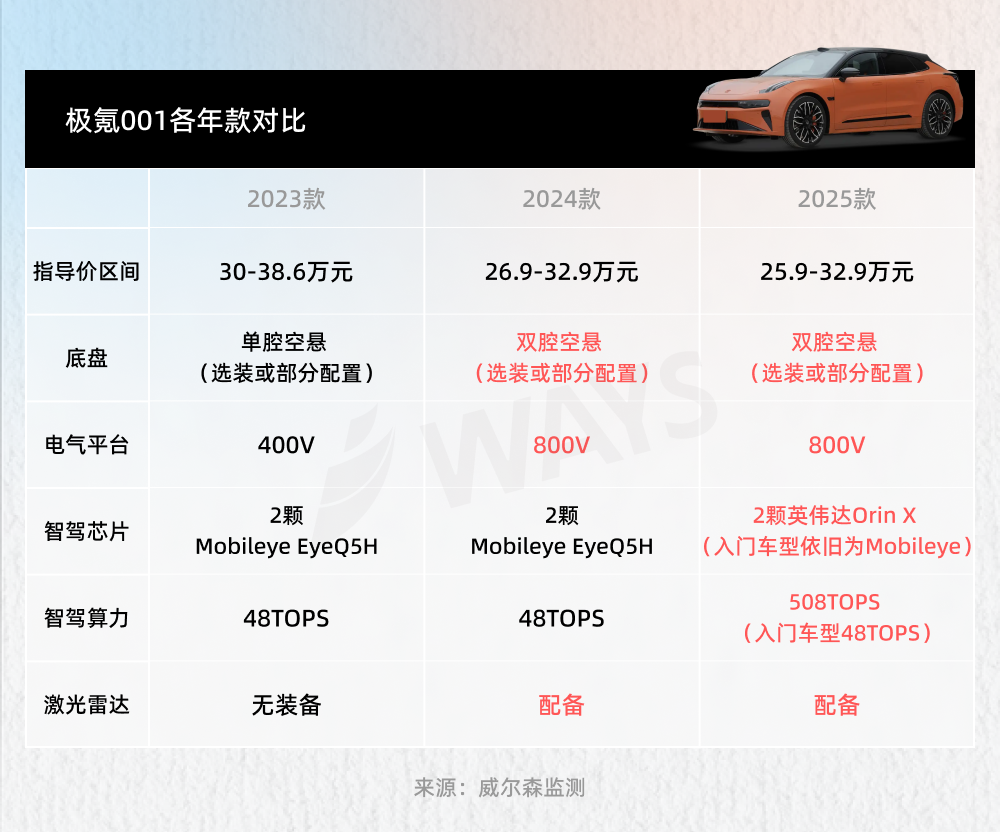 意味着今年年内,你能买到2023款、2024款、2025款这三款不同的极氪001。