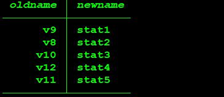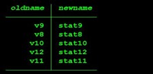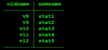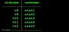 (3) 通配符“#”代表一个或多个数字。例如,我们想把变量v8,v9,v10,v11,v12重命名为stat8,stat9,stat10,stat11,stat12。键入命令: